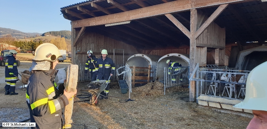 Am 12.03.2023 um 06:57 Uhr wurde die FF St. Michael zu einem Wirtschaftsgebäudebrand in St. Michael gerufen. In einer Kälberbox kam es, vermutlich aufgrund von Selbstentzündung, zu einem Schwelbrand mit starker Rauchentwicklung. Die untergestellten Kälber wurden noch vom Besitzer selbst in Sicherheit gebracht und erste Löschversuche mit dem Handfeuerlöscher durchgeführt. Seitens FF St. Michael wurde der Brand letztendlich vom Atemschutztrupp gelöscht sowie die betroffene Kälberbox ausgeräumt und auf weitere Glutnester abgesucht.